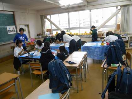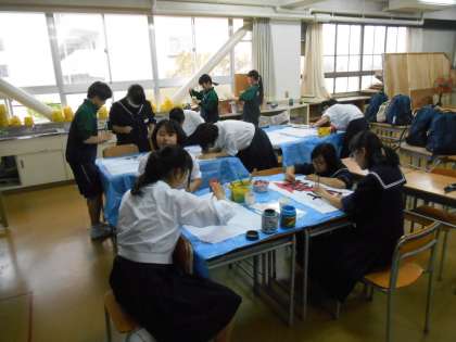 2年生が林間で使う旗を制作していました。