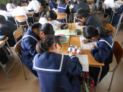 とても興味深い授業でした。全員が配付された問題プリントを解けるようになろう、という目標です。まずは、いつもの学習班で教え合い、次は自由に移動していいから、分からないところを聞く、聞かれたら教えます。最後にいつもの学習班になって確認します。
