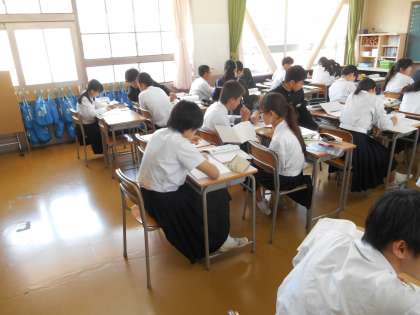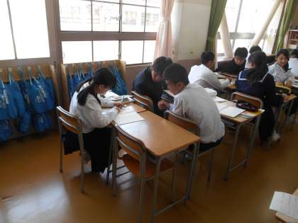 1枚目の写真の式の変形について学んでいます。学習班(机は動かしていませんが)で驚くほど、教え合いをしています。私の目の前の生徒が「あ、分かった。そうしたらいいんや。」と声を挙げました。教員はこの瞬間がめちゃくちゃうれしいのです。やったあ。