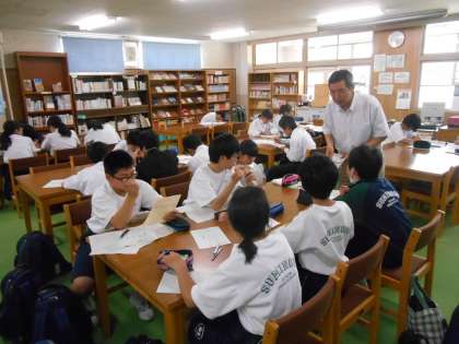 今年度初めてのまなび舎を行いました。昨年度の1学期中間テストの英語・数学を用意しました。何人かの生徒といっしょに勉強し、「先生、分かったー。」という声を聞き、飛び上がるほどうれしかったです。約30人が集まりました。ありがとう。