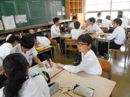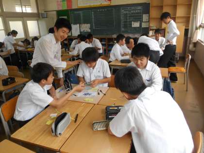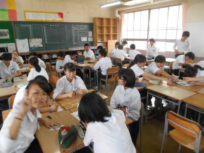 このクラスも宿舎に掲示する自己紹介カード作りです。