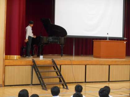 体育館に置くグラウンドピアノの話をしました。ある音楽家の方が交通事故で亡くなられました。ある先生たちの紹介で本校に頂くことになりました。詳細は学校だよりに紹介します。