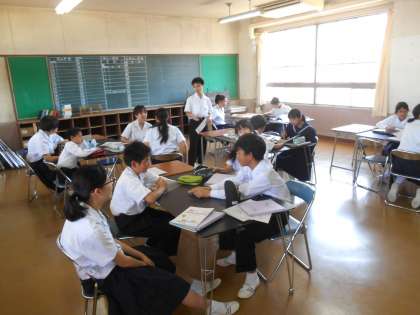 AETの先生と英会話を一対一でやっています。自己紹介などを話していました。これぞ生きた英語につながると思います。