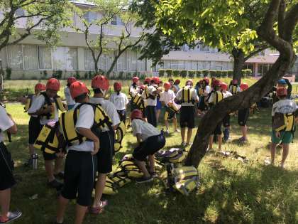 いかだ体験中です。