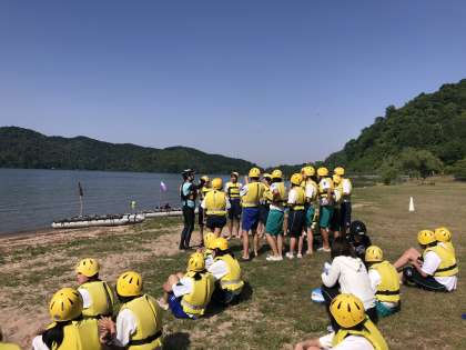 いかだ体験中です。