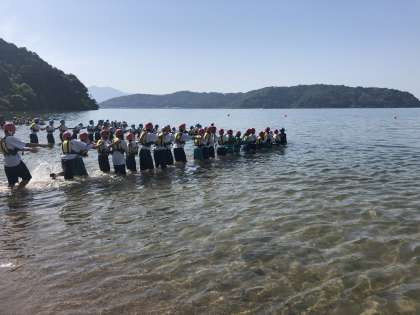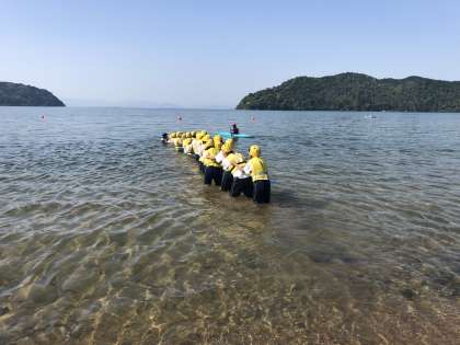 まだ時間が余ったので、ライフジャケットの大切さを知るために琵琶湖で水遊びをしました。行きたがらない人も多かったですが、入ってしまえば楽しそうでした。