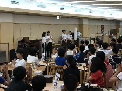 ごちそうさまをしています。係の生徒が元気にやってくれました。