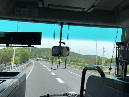 バスが高速道路に乗りました。おやつ食べてもいいですよ。というか、さっき朝食食べたところですよ?
