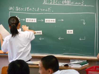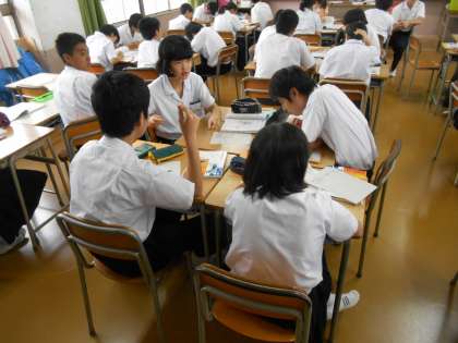 グループで学習です。1人が前に出て、今日学習した内容を確認するため、カードを順番に並べていました。