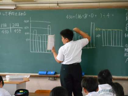 今日も前に出て説明していました。先生が「計算の結果より考え方が大事です。」と言っていました。