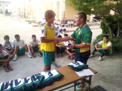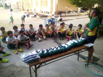 気合いの入った練習を終え、公式戦ジャージの儀式を行いました。