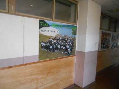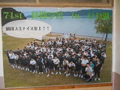 林間の近江八幡の浜辺で撮影した写真が大きく掲示されました。We are familyですね。