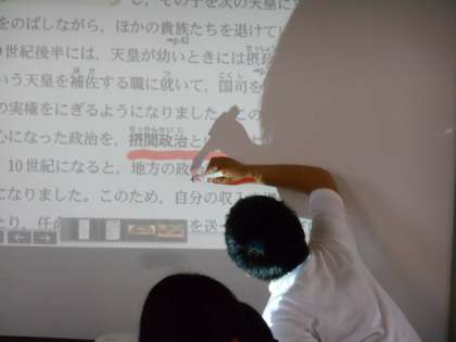 摂関政治の藤原道長、頼通親子がなぜ長年にわたって大きな力をもっていたのか、それをテーマにした授業でした。授業の最後に見事にその答えを発表している場面です。