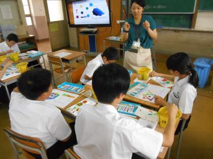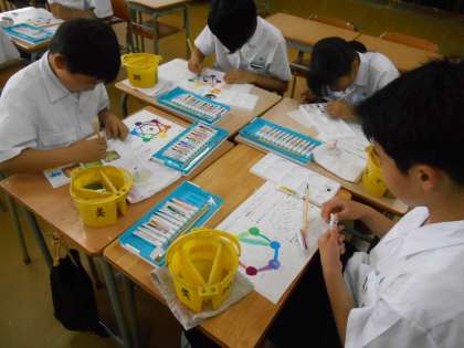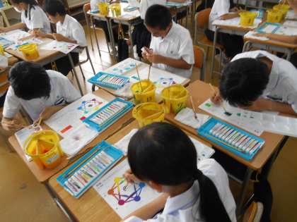 先週、12色を原液を混ぜて作った授業の続きです。今日も色にこだわった授業でした。