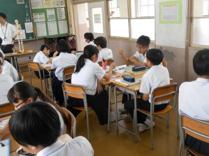 人体模型をつかって、じん帯の伸び縮みを確認し、自分の体でも確かめていました。