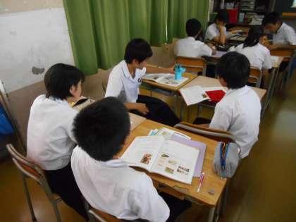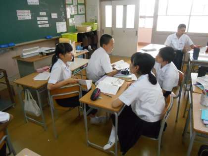 席の前後左右で会話練習です。