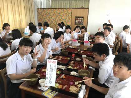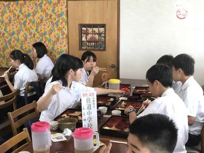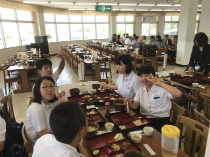 昼食中の様子です。おいしそうに食べています。