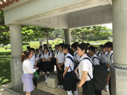 有名な遺跡の説明を聞いています。