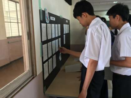 2年生は9月4日(火)から職場体験学習を行いますが、今日はそれぞれがエントリーシートを持って、多目的室に用意された「住中ハローワーク」に求人票を見に行きました。