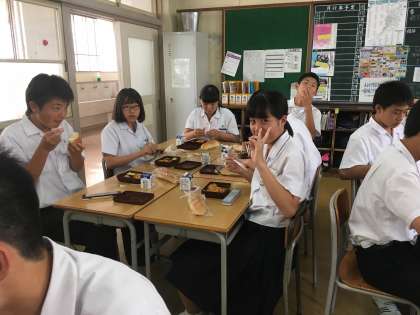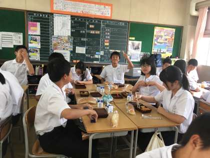 今日は、3年1組におじゃましました。沖縄で日焼けした生徒が多かったです。