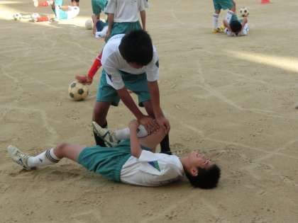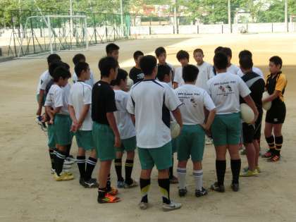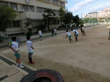 いつも変わらぬ光景ですが、これでいいでしょうか。ラグビーの朝練です。サッカー部の入念なアップ、真剣です。