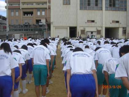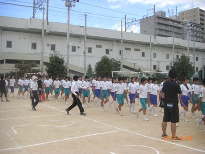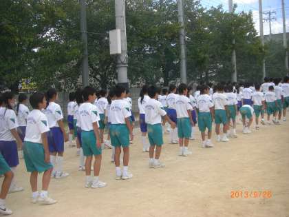 前回の練習同様、行進・ラジオ体操の練習をし、その後退場の練習・校歌の練習も行いました。