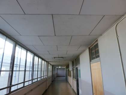 朝、校舎内を見回ります。天井がだらんと下がってきています。