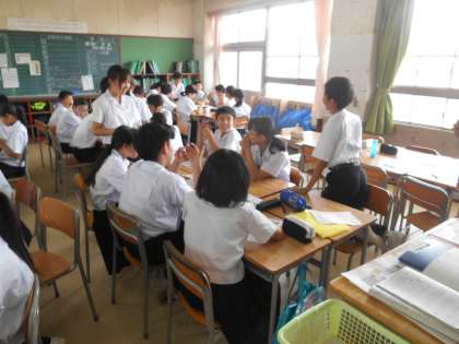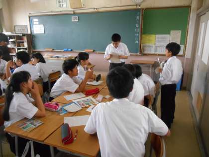 このクラスでも発表する人が立ってプレゼンをしていました。聞いている人が質問する場面もありました。