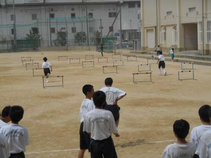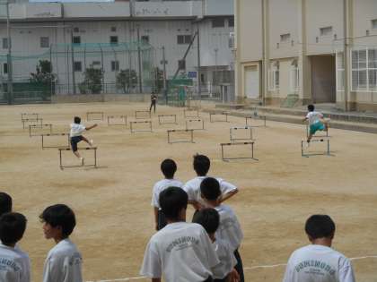 よくあるのですが、生徒が生徒に「おーい、まだテストを受けてない者が先に走るんやぞ。」とか「まっすぐ並んで。」と声かけをしていました。これはどの学年でもそうです。体育でないときも見ます。これはすばらしいことです。