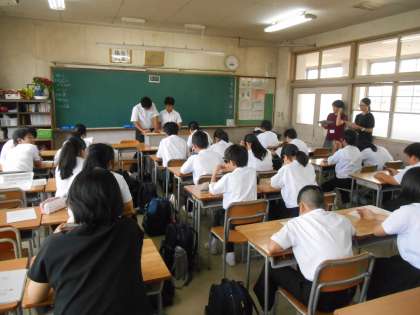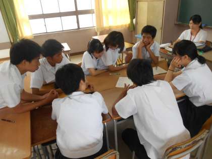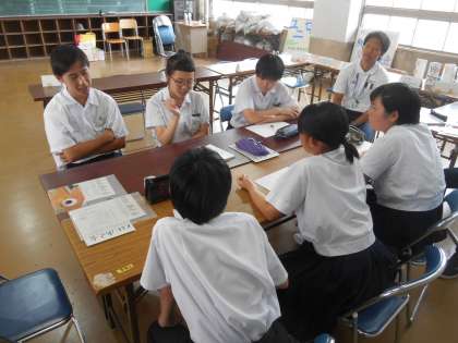 保健委員会、生徒会役員、3年学級委員会です。頭を寄せて話し合っていました。すばらしい。