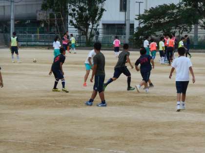 ラグビーとサッカーが練習を始めました。