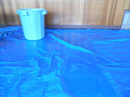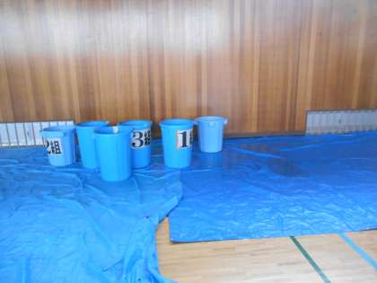 昨夜からの雨が気になって、朝7時15分に体育館に行くと、予想どおり雨漏りです。