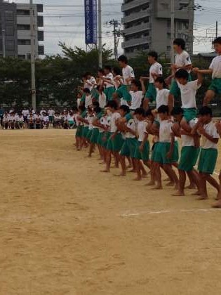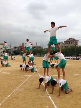組み体操がおわりました。メインのものははぶきましたが、それでも見事です。練習の成果が出ています。