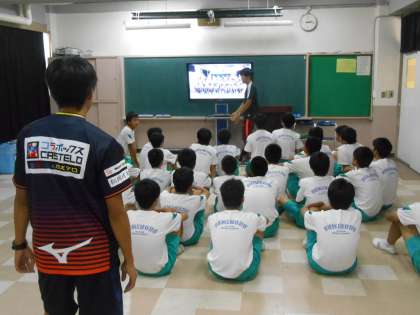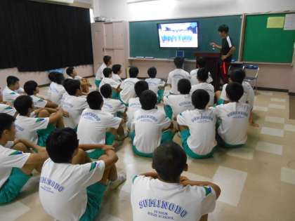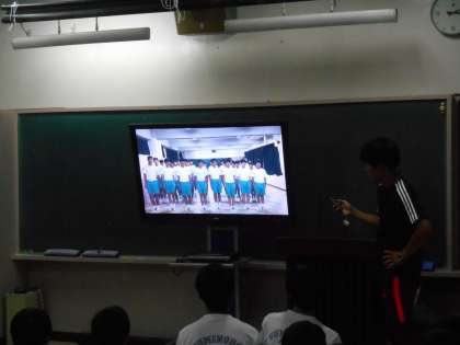 男子の集団行動の練習を多目的室で行いました。廊下にも大きな声が響いているくらい迫力満点の演技です。
