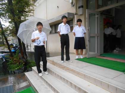 今朝も雨で大変でしたが、生徒の元気な声に励まされました。ありがとう。
