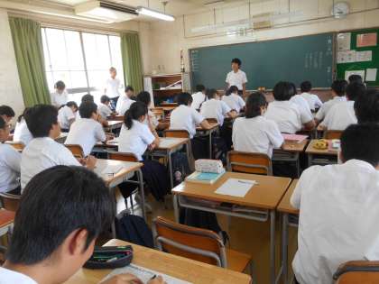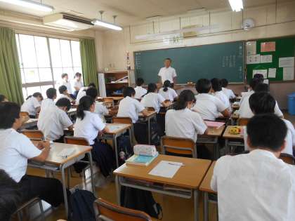 夏の思い出の出来事をスピーチしています。クラブのこと、枚方パークのこと、甲子園のことなどが話されていました。どの人も分かりやすくスピーチできていました。
