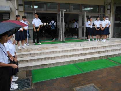 天気はどんよりしていましたが、朝の校門は元気いっぱいの声が響いていました。みんなありがとう。