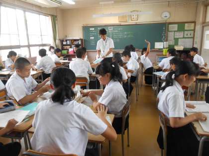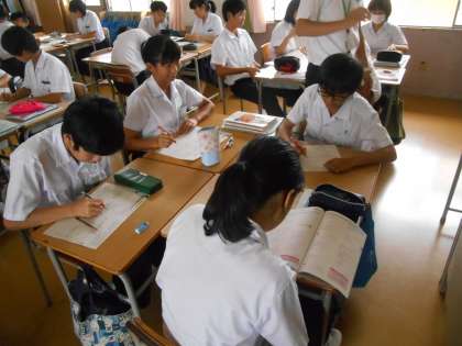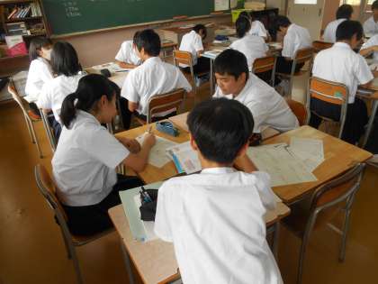 個人思考が終わり、学習班の形で答え合わせが始まったところです。