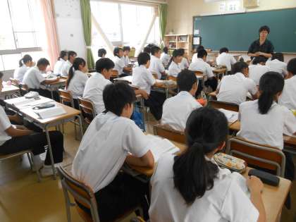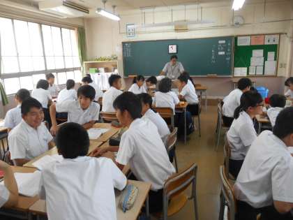 今日の1限は全クラス道徳でした。中心発問に対していろいろな角度から生徒たちの回答が聞かれます。写真はいじめについて考えている授業です。