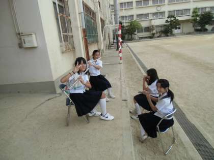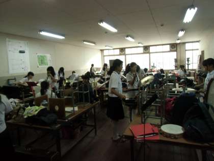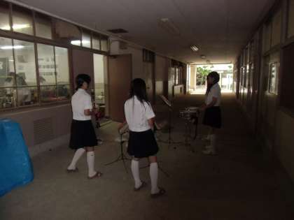いつものカメラが故障しました。光量不足で暗い写真ですみません。吹奏楽部は今日は技術室での朝練です。