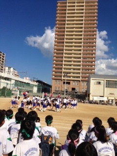 2年生学年種目「背中渡り」です