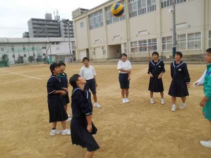 昼休み、グラウンドに行くと、男子はサッカーで大声を出して、走り回り、女子はバレーボールをしていました。校長も女子が「校長先生、やりますか。」と聞かれたので、喜んで輪に入りました。めちゃくちゃうれしかったです。ありがとう。
