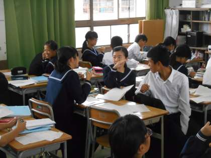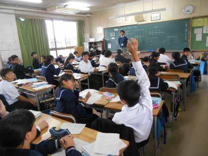 反比例の式を立てているところです。先生の問いかけに真剣に考えている人が目立ちました。