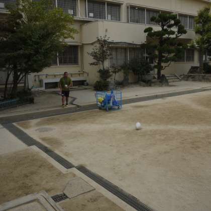 バレー部の生徒の心遣いといったら。私のために防球ネットを開閉してくれます。3枚目は用具点検をしている顧問の先生です。