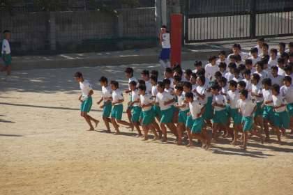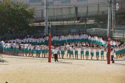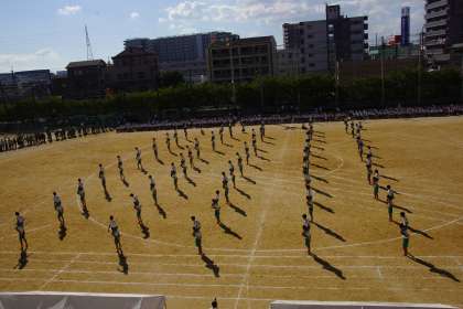 今度は組体を紹介します。これも上からの写真です。きれいに並べていますね。気合いの入っている証拠です。