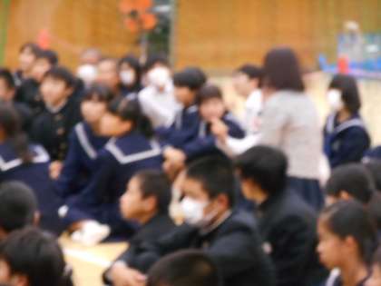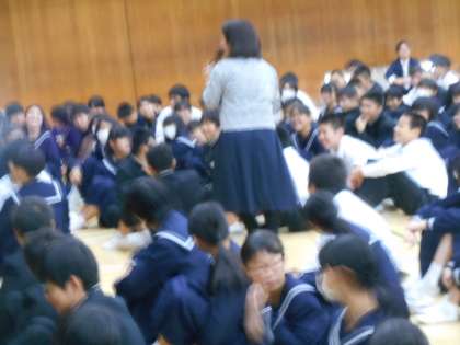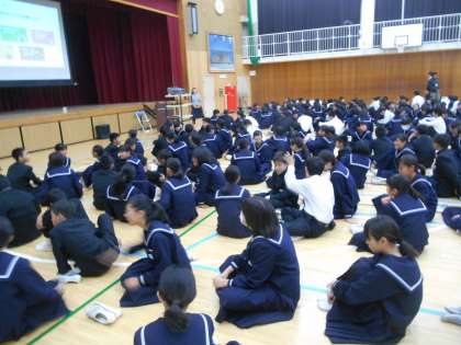 「楽しいコミュニケ—ションの取り方」として、LINE株式会社の方が講師となり、1・2年の生徒が勉強しました。よくある、ピースをして笑顔で写っている写真をネットにアップすると、詳しい人なら、その写真からその人の指紋が分かるそうです。指紋が分かると、指紋認証、銀行の引き落としなど、悪用される可能性があるそうです。他にも、今の中学生が起こしがちなトラブルについて勉強しました。少し時間が伸びたのですが、その理由は、講師の先生の質問に生徒の皆さんが、何人も手を挙げたためです。これはすばらしいことと思います。授業でも、挙手する人が多いです。