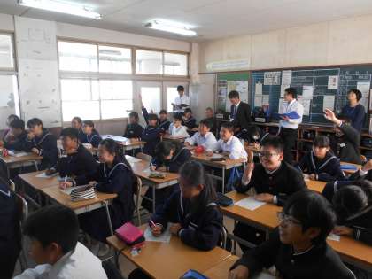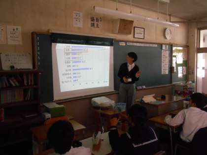 本校の栄養教諭の先生が1年生4クラスに食育の授業を行いました。その様子を見ようと大東市教育委員会からも見学に来られました。