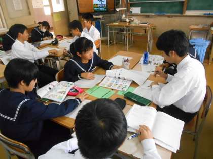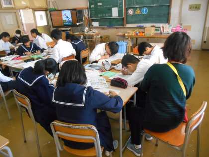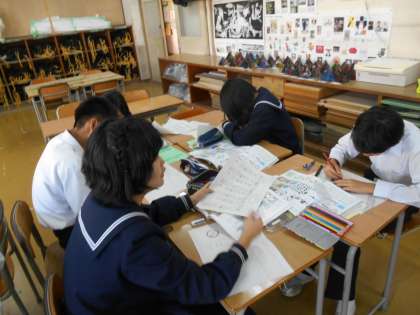 住道中のシンボルマーク(名前を忘れました!!)を考えていました。