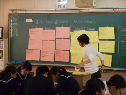 「違いの違い」についてグループで交流し、「あってもいい違い」はオレンジ色の画用紙に、「あってはいけない違い」は黄色の紙に書いて、全員で確認しました。グループごとで考えが異なります。