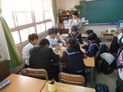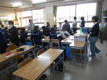 順に、校風委員会、保健員会です。3枚目も保健委員会です。3年生が特別頭を寄せて相談していたので、撮影しました。